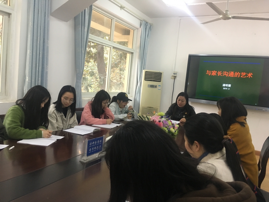 本次培训活动有两项议程:首先是王桃香副校长对青年教师培训的制度与要求作说明,然后由潘明霞主任为青年教师做“与家长沟通的艺术”的培训。