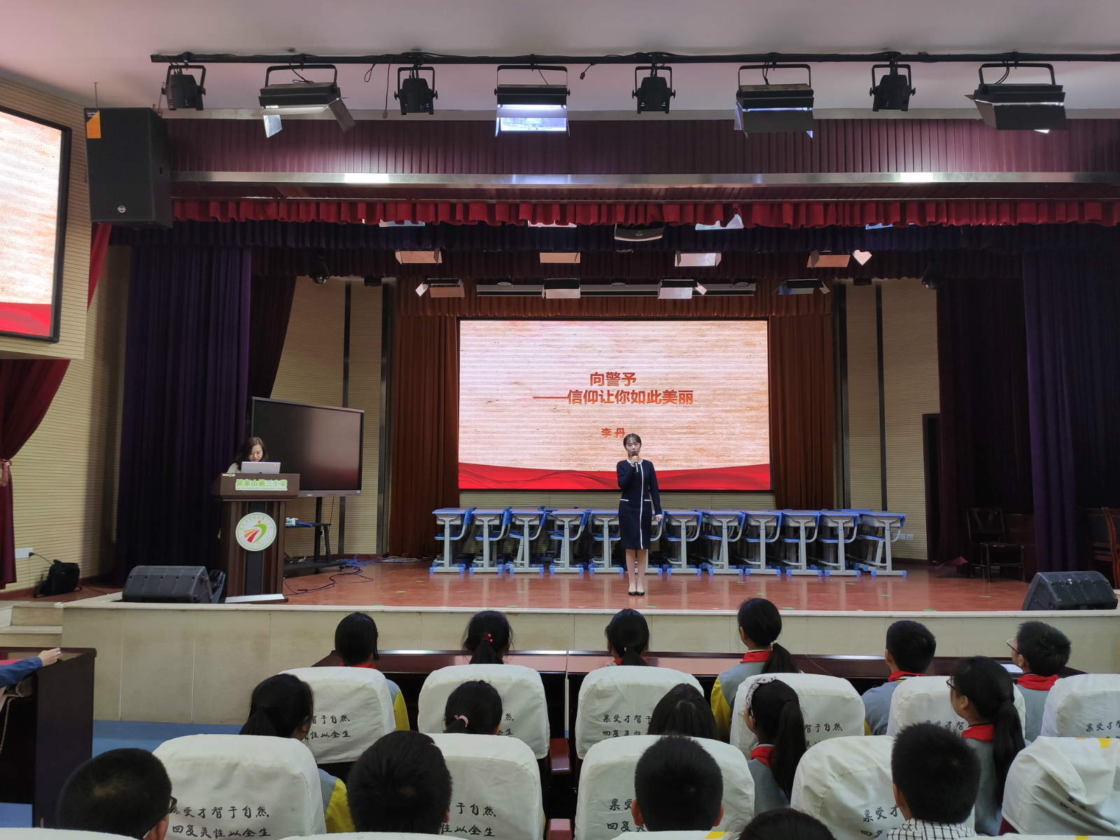最后,现场进行互动。李老师分别邀请了3名学生谈感受,他们都纷纷表示自己在听完这些故事后深有感触,要向英雄楷模学习,学习他们不畏困难、坚定信念、勤俭节约、乐于助人的精神品质,好好学习,将来为祖国做贡献。