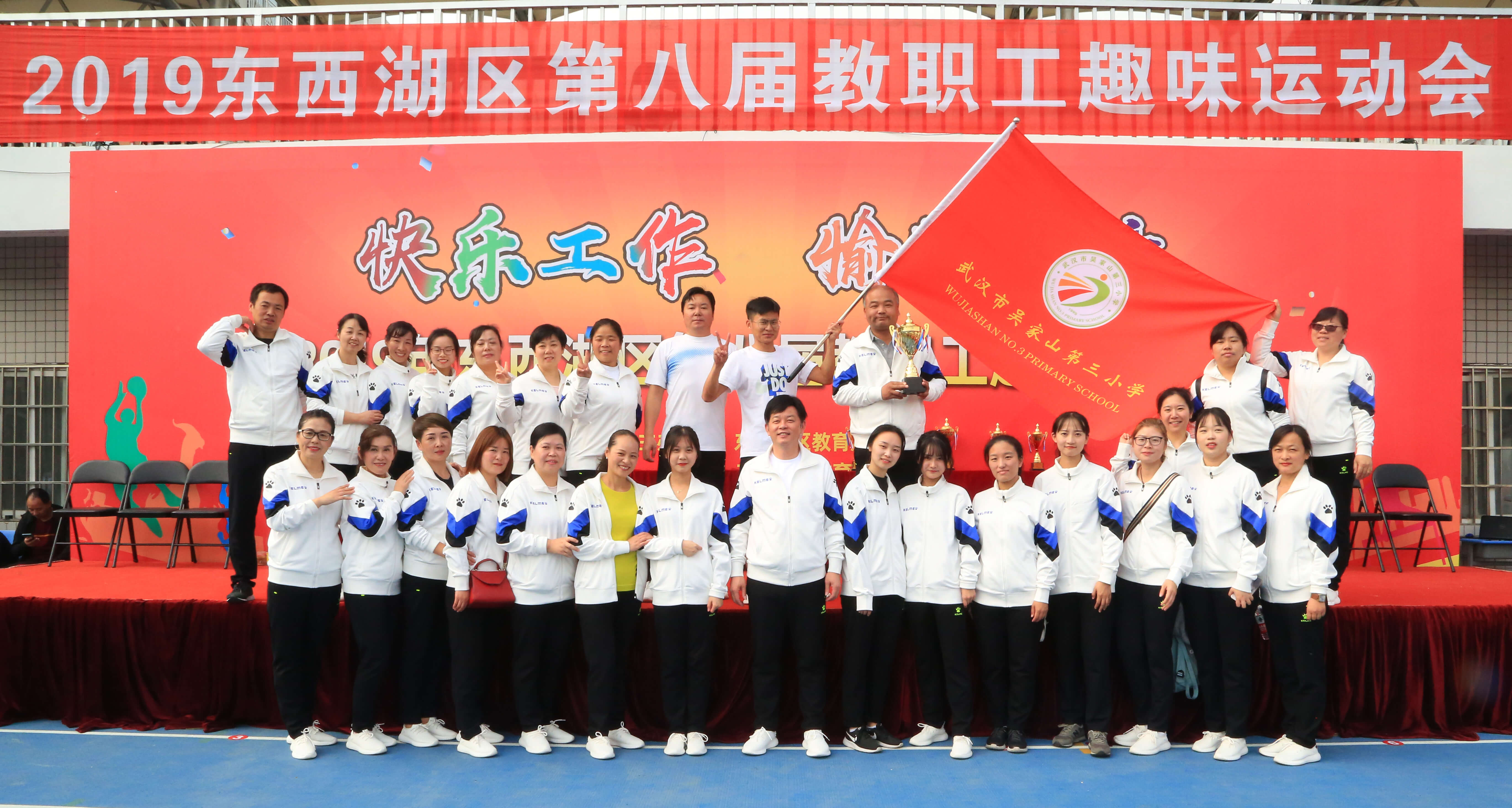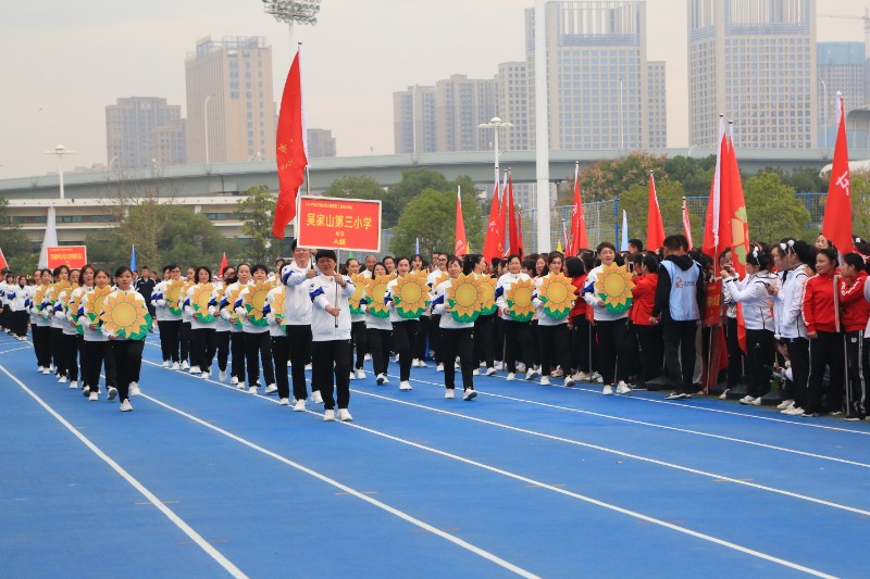 (通讯员:欧阳艳萍 刘腾)为了展现全体教职工良好的精神风貌和昂扬的斗志,增强教职工的集体向心力和团队凝聚力,同时也为了丰富教职工的文化生活,增强全体教师身体素质。11月24日,东西湖区第八届教职工趣味运动会在吴家山中学隆重举行。全区共76所学校和局机关,近3000名教职员工参加了此次活动。吴家山三小秉持着“大展中强凌空之志 打造临空品质教育”的信念与昂扬坚韧的斗志,一举夺得广播操A组一等奖、入场式A组二等奖和多个单项比赛二、三等奖。